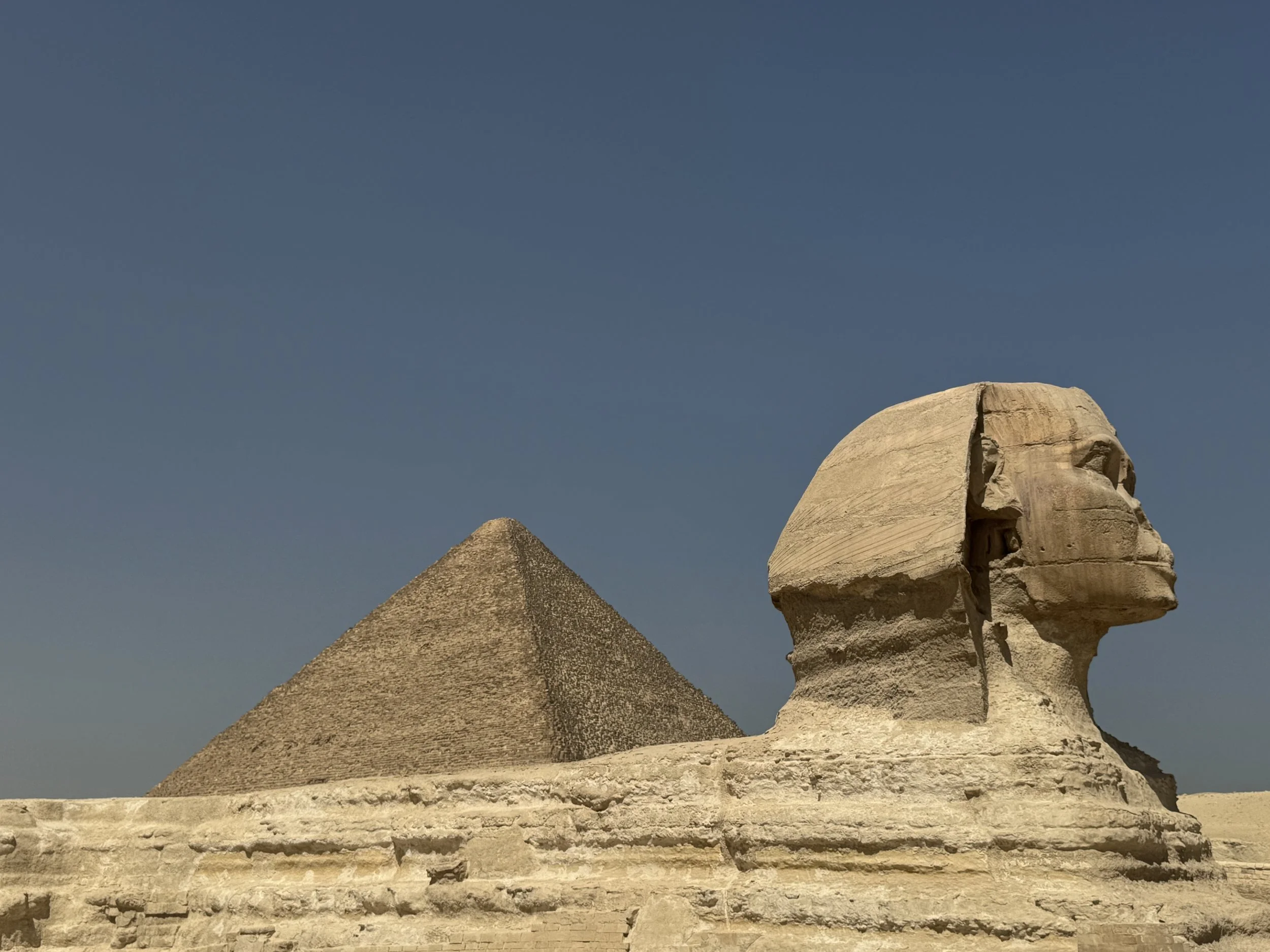 On my trip traveling around Egypt I relished in learning as much as I could since the history nerd in me has always been fascinated with Egypt. To see up close the results of mummification such as the leather-like skin, the preserved hair, the linen stuffed into the nostrils and ears of former kings and queens who were sealed in multiple sarcophagi then enclosed in tombs that were lost to records and found (raided) thousands of years later to then be put on display was incredible. To see the intricately carved sandstone reliefs painted in still-visible color line the walls of said tombs was like entering a time capsule that both felt mysterious and intrusive. For as much is known there is still so much unknown, still so much buried in mud under the surface of the Nile River or like the ruins of Alexandria’s lighthouse lying on the floor of the Mediterranean Sea. So much that was stolen and never returned.